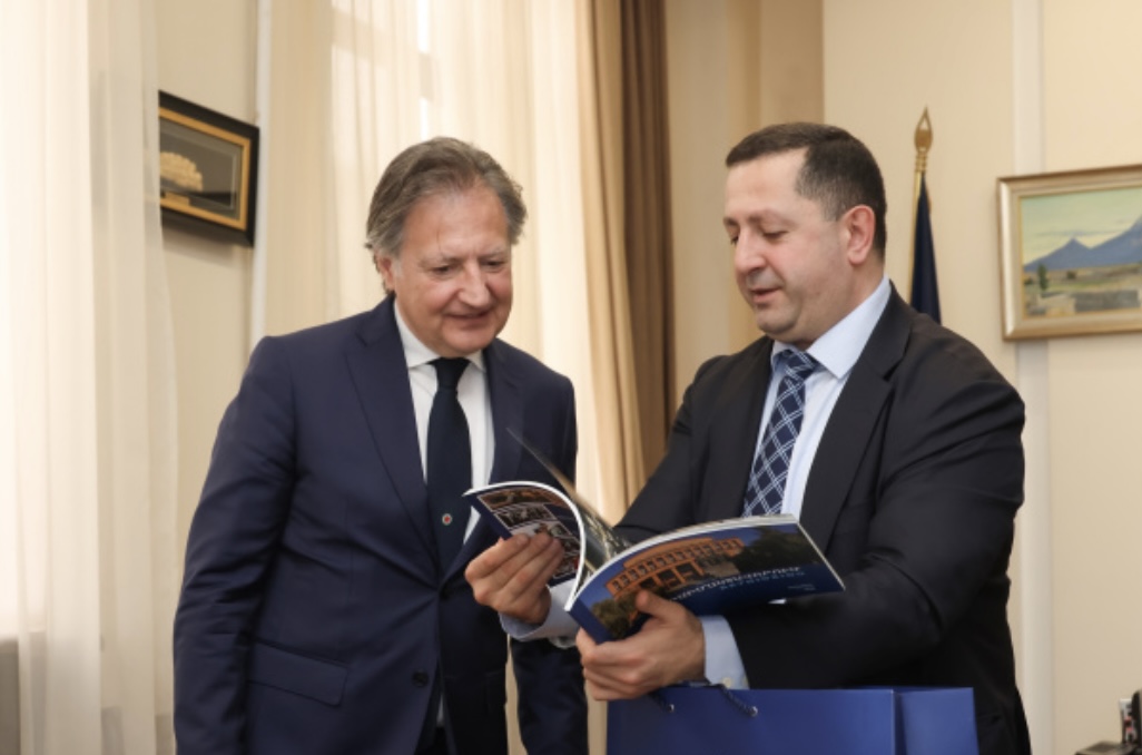 Il 20 marzo 2026 l’Ambasciatore Alessandro Ferranti si è recato in visita presso l’Università Statale di Jerevan, dove è stato ricevuto dal Rettore dell’Ateneo, Hovhannes Hovhannisyan.